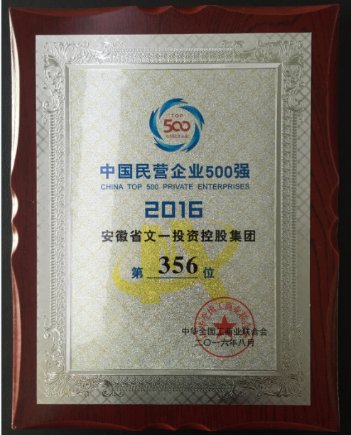 ??8月25日,由全国工商联主办,工业和信息化部、国家工商总局支持的“2016中国民营企业500强发布会”在北京召开,在榜单中,文一集团再次入选中国民营企业500强(356位),相比2015年排行名次上升97位。??