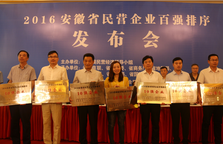 9月27日,在2016安徽省民营企业百强排序发布会上文一集团被授予“安徽省民营企业10强”荣誉称号,这是集团连续六年获此殊荣。在百强排序中,文一集团排名2015年度安徽省民营企业纳税百强第三位,营收百强第四位,同时,本次会议还公布了安徽省入围2016中国民营企业500强、中国民营企业服务业100强企业名单,文一集团分别排名第356位和91位。