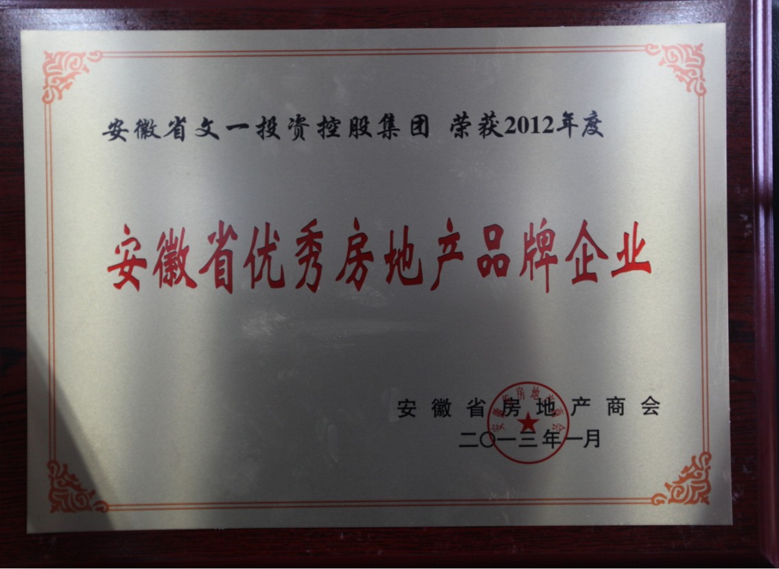 文一集团荣获2012年度安徽省优秀房地产品牌企业