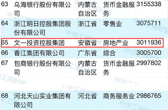 8月29日,2018中国民营企业500强峰会在沈阳举办。会上,中国民营企业500强、制造业500强、服务业100强榜单及分析报告发布。其中,安徽4家企业入围2018中国民营企业500强,文一集团以301.19亿元营业收入排名第247位,居上榜皖企首位。同时排名中国民企服务业100强第65位,也是安徽唯一一家入榜的企业。