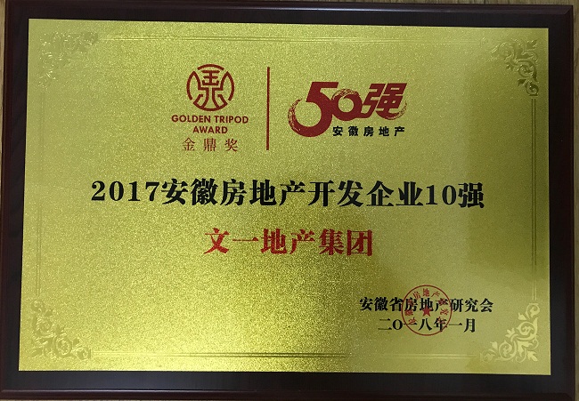 (文一地产荣登2017安徽房地产开发企业10强首位)
