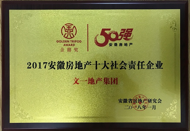 (文一地产荣登2017安徽房地产十大社会责任企业首位)