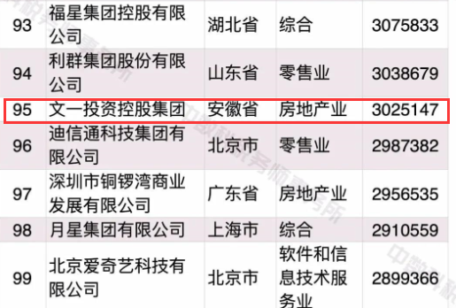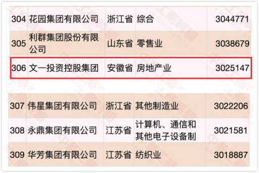 9月10日,2020中国民营企业500强峰会隆重召开。会上,全国工商联发布了2020中国民营企业500强、制造业500强、服务业100强榜单及分析报告。榜单显示,今年安徽省共4家企业荣登民营企业500强榜单,较之去年新增2家。文一投资控股集团荣登2020中国民营企业500强榜单排名第306位,连续三年位居上榜皖企之首,且在中国民营企业服务业百强榜单中排名第95位,成为安徽唯一入榜企业。
