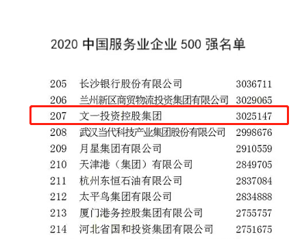 9月27-28日,2020中国500强企业高峰论坛在河南郑州召开。会上发布了2020中国企业500强、中国制造业企业500强、中国服务业企业500强、中国100大跨国公司榜单,文一投资控股集团荣登2020中国服务业企业500强榜单第207位。