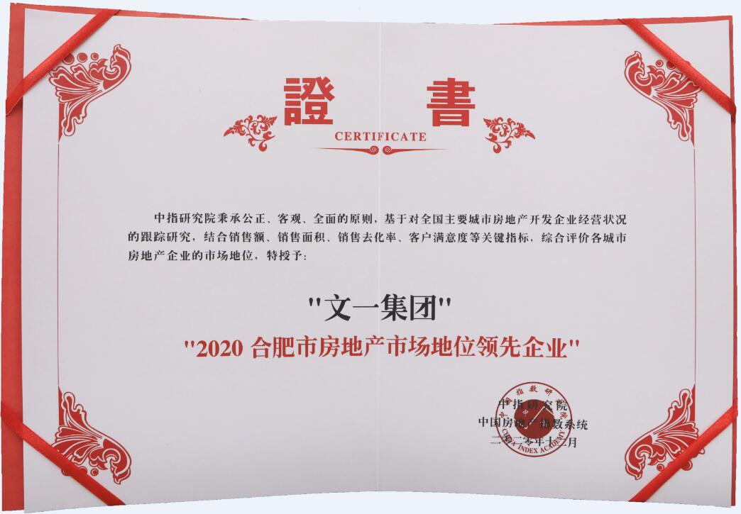 12月3日,由中国房地产指数系统、中国物业服务价格指数系统联合主办的“2020中国房地产大数据年会暨2021中国房地产市场趋势报告会”在北京隆重召开,会上公布中国房地产市场地位领先企业系列榜单,文一集团荣登2020长三区域房地产50强企业榜单第16位,位居安徽本土房企之首,且荣膺“2020合肥市房地产市场地位领先企业”称号。