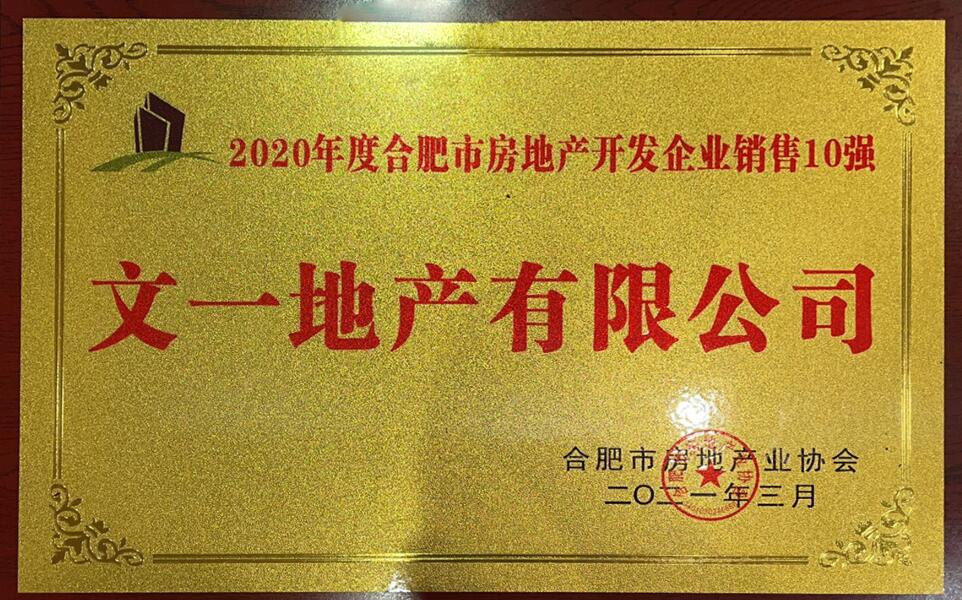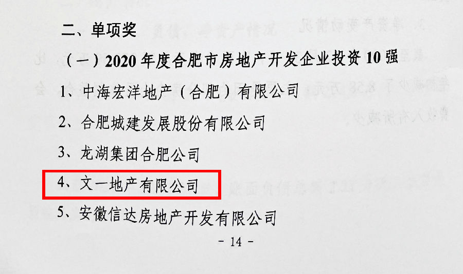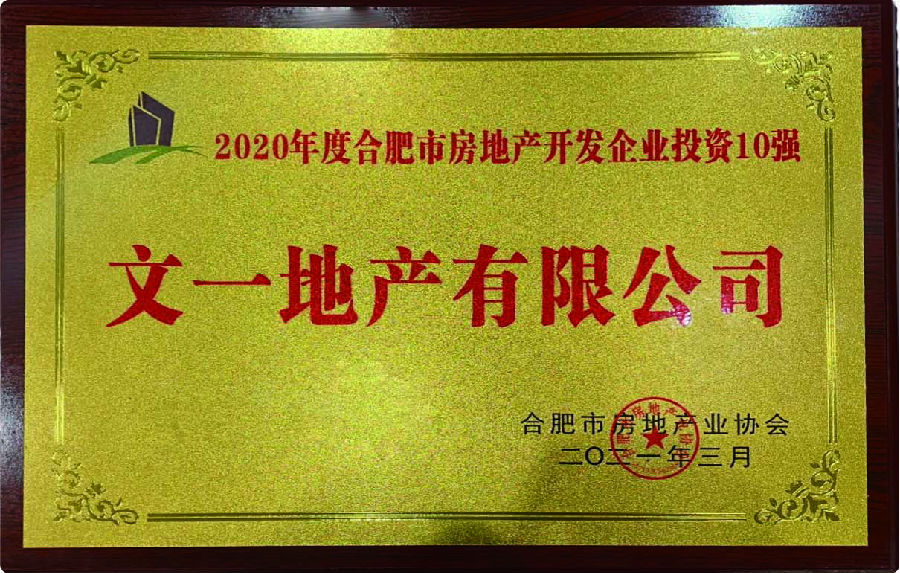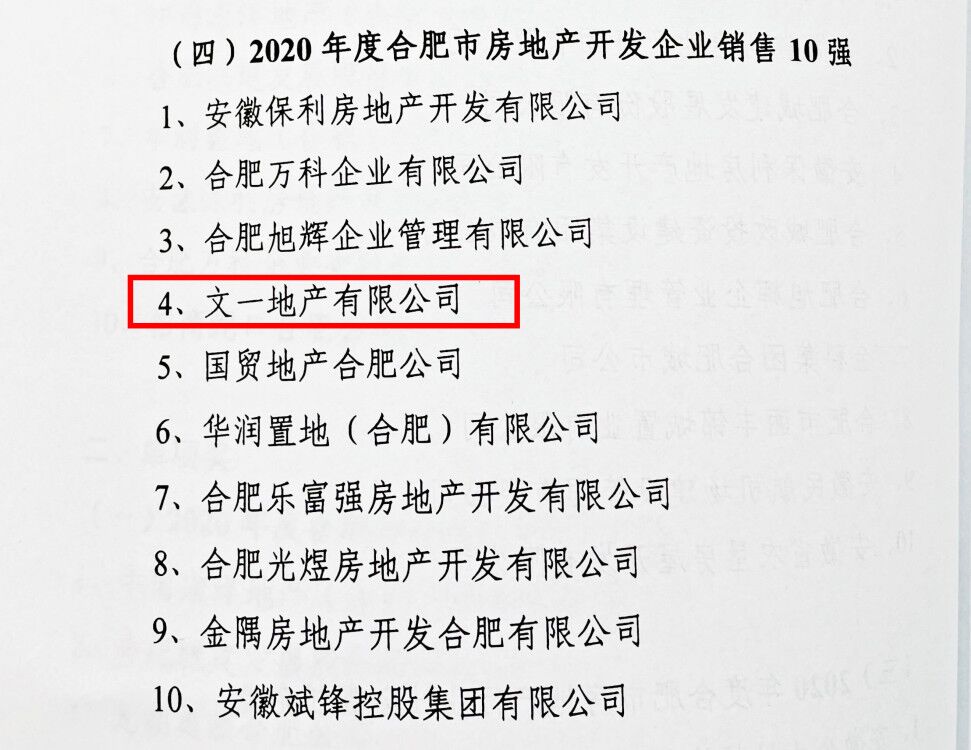 【文一地产】荣登2020年度合肥市房地产开发企业销售10强本土之首、跻身合肥市房地产开发企业投资10强