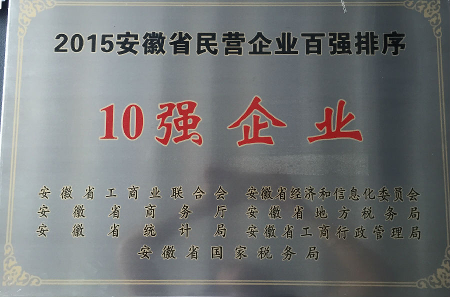 文一集团连续五年荣获安徽省民营企业10强荣誉称号