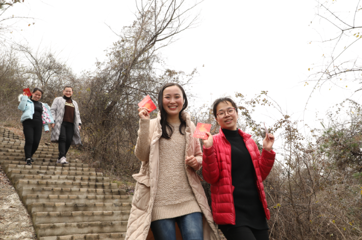 首先进行的是“登山寻宝”,山里清新的空气,美丽的景色,让大家一扫春天早晨的慵懒,出发的口令发出后,大家箭步迈向白马山,寻找工作人员四处放置的文化卡片。经过1个小时的寻找,最终第3队以68张文化卡片、680积分的成绩暂时排名第一,第5队以65张文化卡片、650分的微弱劣势排名第二。