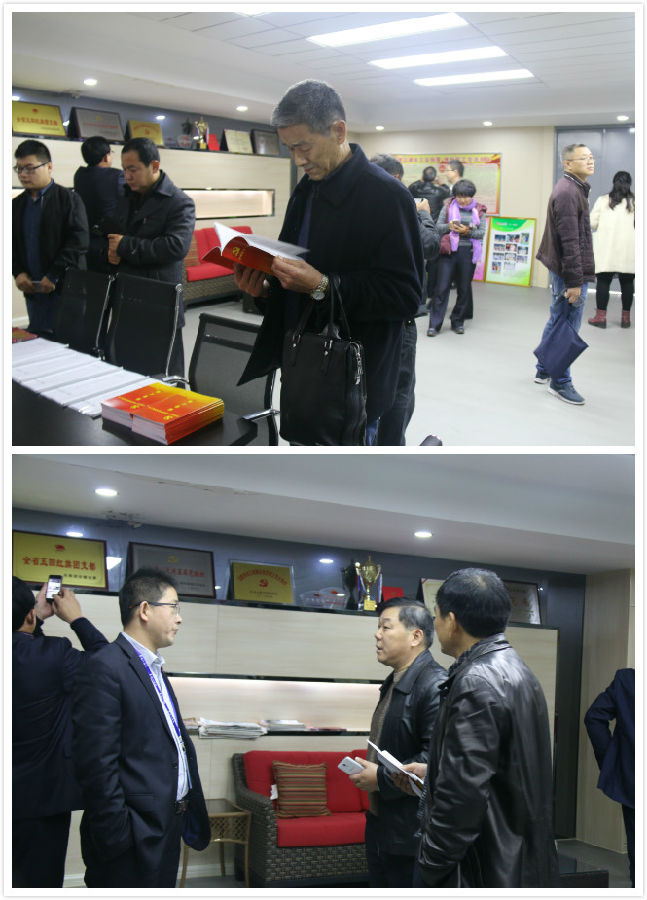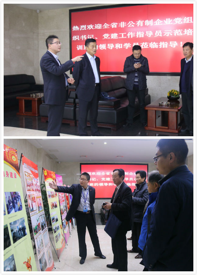 来自安徽省各地的非公企业的党组织书记和党建工作指导员先后参观了集团12楼的党员活动室和7楼的职工书屋,集团党委领导介绍了文一集团的发展历程、企业文化以及党建工作开展情况。在党员活动室,大家相互交流党建工作心得,并传阅文一党委最新印制的《文一集团党建工作制度汇编》、《安徽文一基金管理暂行办法》以及廉洁从业、保密管理等一些制度展示牌。学员们对文一企业的文化和党建工作给予了高度的评价,纷纷拍照留影。