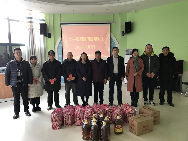 关心关爱困难职工是文一践行“砖瓦精神 贡献社会”的重要组成部分。此次慰问的17户困难员工家庭,是经各单位申报、集团党委认真研究决定的,他们来自于物业、物流、酒店、教育、酒业的一线职工,在欢庆佳节来临之际,为了让每一位文一人过个快乐丰盛的春节,公司为他们送去了食用油、大米等生活用品以及新春红包。