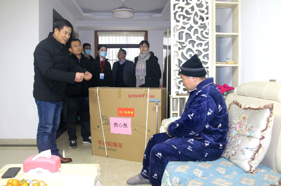 随后,沙总一行来到文一·名门名城小区,为该小区5户困难业主送去心愿礼物。在因患脑中风而失去行动能力的张克宝家中,沙总仔细询问了他的身体及家庭情况后,代表集团党委表达了深切的关心,并表示,困难只是暂时的,希望能正视困难,加强锻炼,争取早日恢复行动能力,重获健康美好的生活。张克宝的家人表示,感谢文一和社区的关心和帮助,一定会努力克服困难,以积极的心态面对生活。