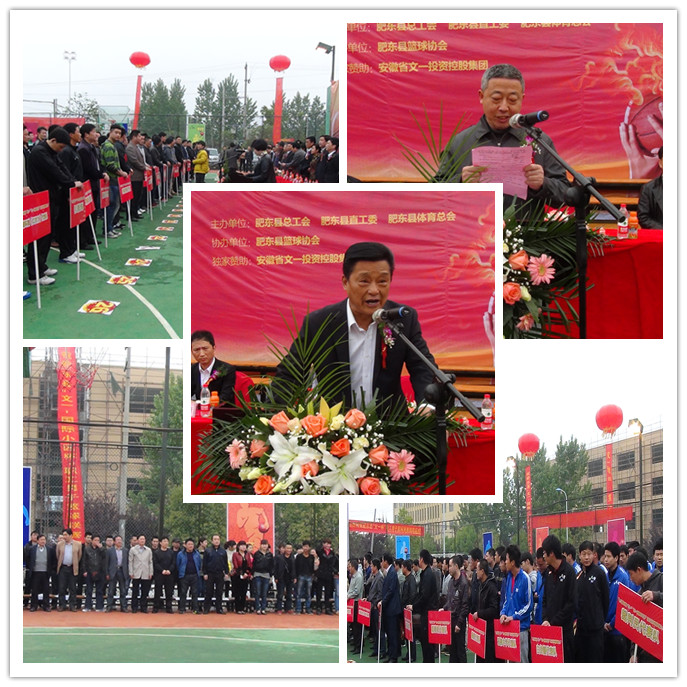 为欢庆“五一”国际劳动节,4月24日,由文一集团独家冠名,肥东县总工会、县直机关工委、县体育总会联合主办迎“五一”职工男子篮球赛在文一国际灯光蓝球场鸣哨开赛。县人大副主任杨玉好、副县长宋琪、县政协党组副书记王盛水、县篮协名誉主席陈锦先、县总工会主席宋启军、文一集团副董事长兼党委书记韦存华、副董事长兼常务副总裁周文及工会主席周文锁等领导出席本次开幕式。