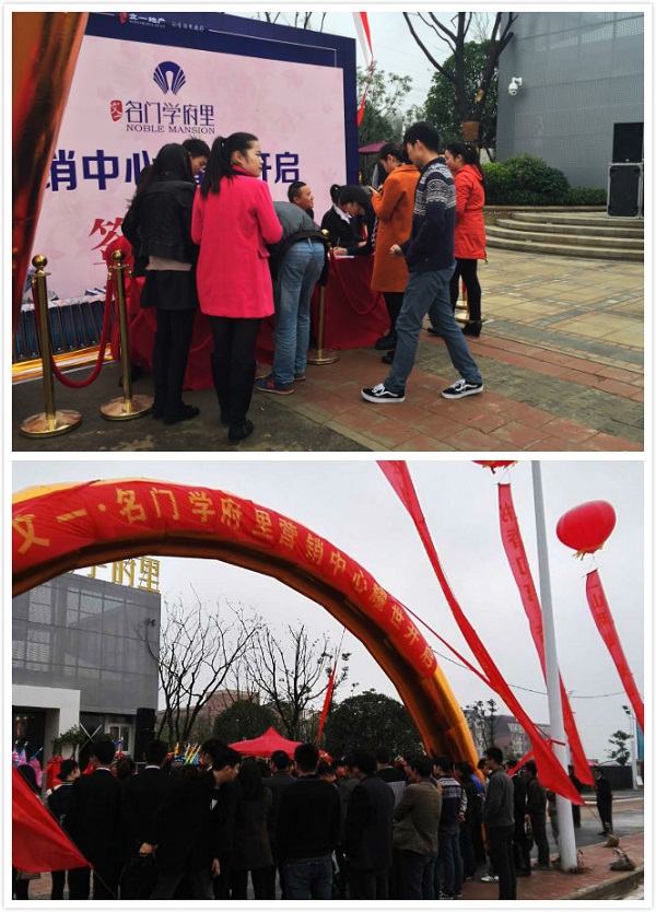 时值11月中旬,虽是初入冬季,风中已然带有阵阵寒意,但这阵阵寒意却无法阻挡人们的热情,上午8点半左右各位家长纷纷在高新区新七中北门聚集,此时彩旗飘飘,人头攒动,但这并不是七中开学也不是父母送子女上学,而是他们都是来参加文一·名门学府里营销中心开放的活动。