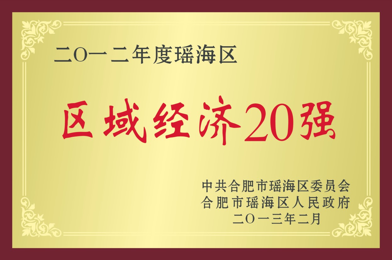 2013年2月,在瑶海区召开的2012年度总结表彰大会上,对2012年度在全区经济建设和社会发展中做出突出贡献的“有功之臣”给予重奖,我集团旗下安徽瑞泰置业有限公司获二○一二年度瑶海区“区域经济20强”殊荣。