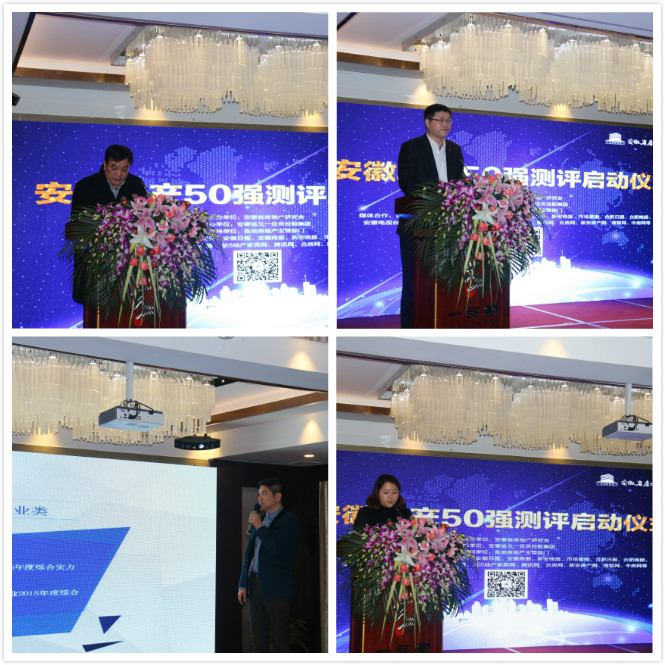 发布会,安徽省房地产研究会秘书长汪远长对“安徽省房地产行业2015年度综合实力50强测评”活动进行系统的介绍,包括“50强”测评的细则、时间安排、后期配套政策支持等。本次测评共设立了十个奖项,包括“安徽省房地产开发行业2015年度综合实力50强企业”、“安徽省本地房地产开发企业2015年度综合实力30强”、“合肥市本地房地产开发企业2015年度综合实力10强;蚌埠市、芜湖、淮南等15市本地房地产开发企业2015年度综合实力3强”、“安徽省房地产开发行业2015年度最具成长性10强企业”、“安徽省房地产开发行业2015年度最具专业特色10强企业”、“安徽省房地产物业服务行业2015年度综合实力30强企业”、“安徽省房地产估价机构2015年度综合实力10强企业”、“安徽省房地产中介代理机构2015年度综合实力5强企业”、“安徽省商业管理运营企业综合实力5强”、“品牌供应商综合服务实力5强企业”。