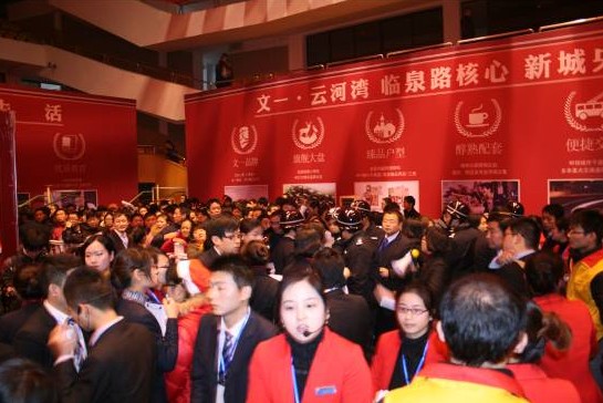 8时58分,伴随着主持人热情洋溢的开场白,文一·云河湾开盘典礼盛大启幕。此次开盘,推出了A、 B两个组团以及景观楼王等1000余套新品房源,折算价仅4180元/平起,均价5100元/平,超低的价格、超高的性价比,吸引了无数购房者的目光,成为2012年合肥选房人数最多,成交套数最多,最为火爆的项目。据不完全统计,当日至少有近2000组认筹客户参加此次公开选房活动,选房人多,推出的房源少,是选房当天最为真实的现场写照。由于前期认筹客户太多,本次开盘采用了单、双号电子摇号的选房形式,2000多双等待的眼神,焦急地拿着手中的摇号券,期待着自己的号码能被抽中而尽早选择满意的房源。