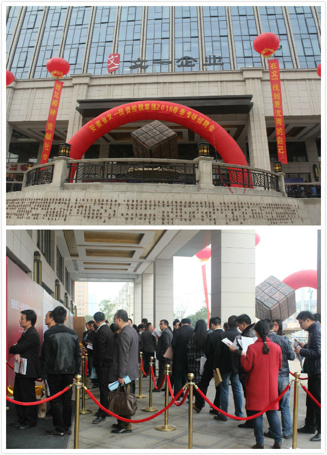 作为中国民营企业500强企业,文一集团多次被评为合肥市最佳雇主单位以及合肥市劳动保障诚信示范单位,优厚的福利待遇以及广阔的发展空间让文一受到广大求职者的青睐。3月6日早晨8点钟不到,招聘会入口处已经排起了长龙。上午10时许,招聘会到达高峰,一楼和四楼的等候区座无虚席,一楼登记区的等候人才都已经排到马路上,引得路人纷纷赞叹文一集团招聘会的场面火爆。