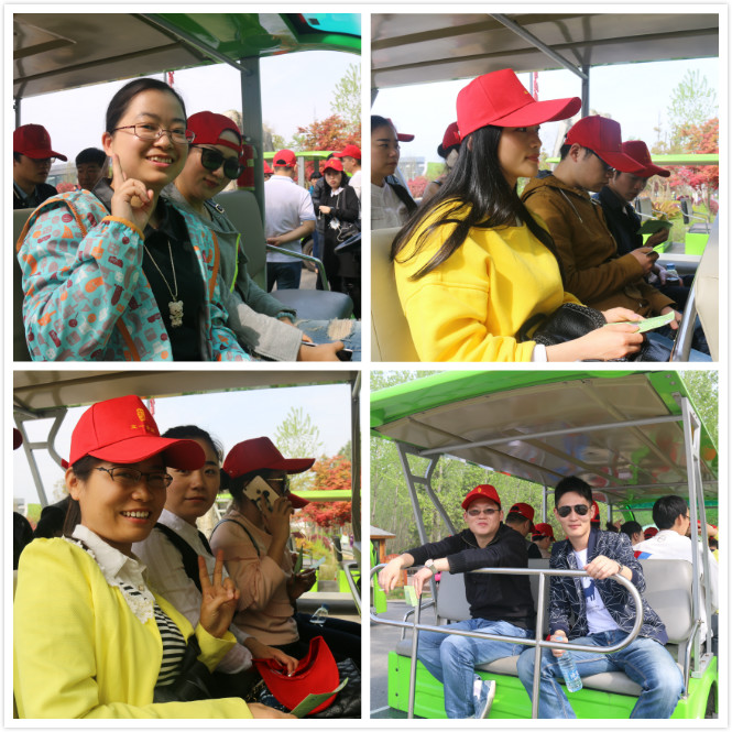 活动第一站到达享有城市“绿肺”的国家级滨湖湿地公园。观光车满载欢声笑语,沿途风光无限:开始结角的金黄油菜花、遍地的粉红色落英、翠绿的杨树林,还有红色的森林小火车……春末的气息让大家放松疲惫的身心,尽情感受自然的魅力。在游览了整个园区之后,大家合影留念并出发前往长临河古镇。