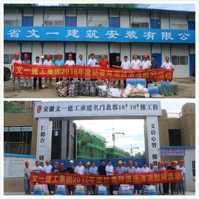 三伏盛夏,烈日炎炎,为鼓舞士气、斗战酷暑、确保各项目施工现场人员的身体健康和施工生产安全,7月21日,文一建工集团开展了防暑降温“送清凉”慰问活动。