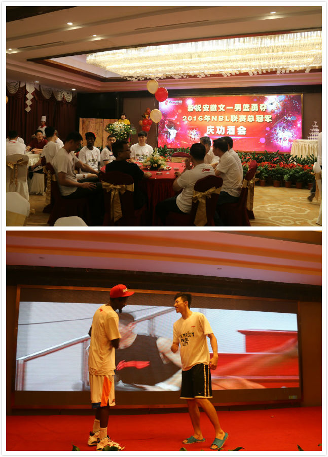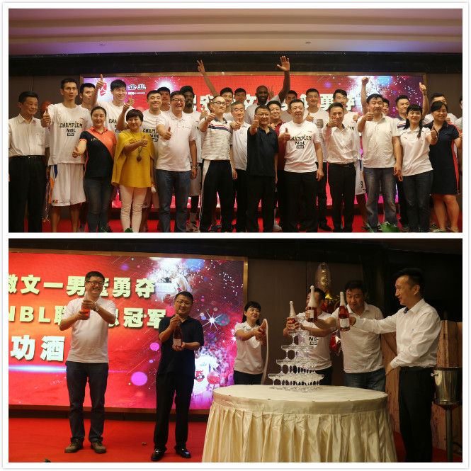 9月4日晚,文一男篮2016NBL联赛总冠军庆功酒会在文一戴斯大饭店圆满举行,集团董事长周文育出席,并携集团中高层共同为文一男篮健儿庆功。本次宴会由集团副总裁薛英姿主持。