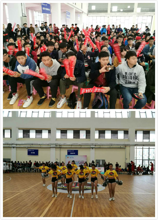 赛前,现场几百名球迷在本赛季NBL合肥主场DJ大D的带领下,手持助威棒有节奏打着节拍,比赛一触即发,大战即将来临,还真有点职业比赛的感觉,现场氛围一下子紧张起来。