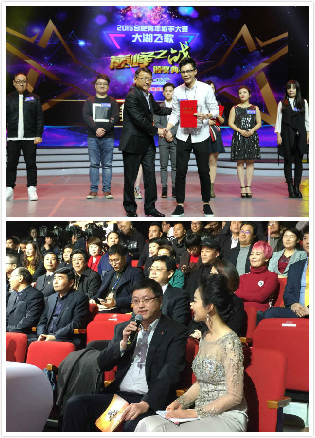 12月12日晚,“文一地产 大湖飞歌”2016合肥青年歌手大赛总决赛暨颁奖盛典在合肥广电中心1500平方米演播大厅举行。市委副书记汪卫东,市委常委、副市长孔涛,市委常委、宣传部部长钟俊杰,市人大常委会副主任阚建华、文一集团董事长周文育等领导出席颁奖盛典并为获奖选手颁奖。文一房地产集团总裁韦勇在直播现场接受了主持人的采访。