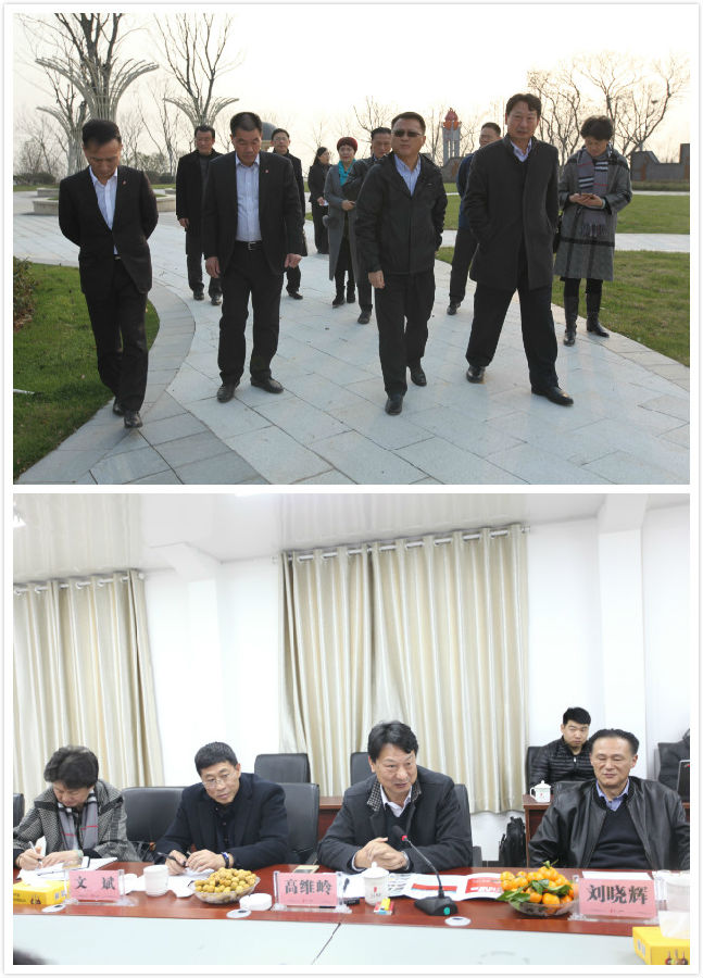 12月23日下午,省体育局局长高维岭,合肥市体育局副局长高克环,肥东县副县长徐浩,巢湖市副市长胡昂等一行领导莅临文一白马山国家篮球公园项目调研指导,集团董事长周文育,副总裁兼党委副书记朱红敏,副总裁兼工会主席周文锁等领导陪同。