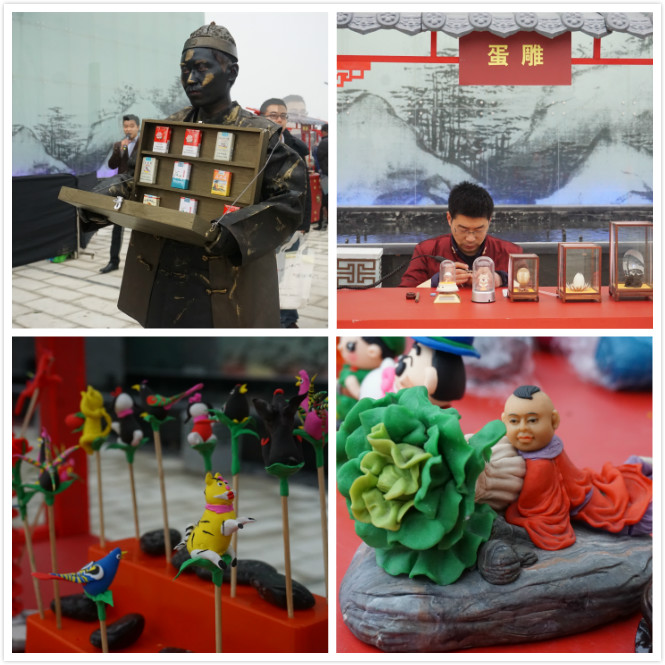 上午时分,在塘溪津门营销中心的外场通道,首先映入眼帘的便是两千年来历数的皖籍著名大家,老子、朱元璋、曹操、包拯、李鸿章…等形形色色的历史形象惟妙惟肖,他们从不同的年代走出,在不同方面都曾有过建树非凡的成就,让历史铭记,令皖人骄傲。走进会场区,仿佛进入到另一个维度的世界,棕编、面塑、糖画、三河米饺、蛋雕、公和堂狮子头等安徽各地的非遗手工与小吃同时出现在会场内,琳琅满目的场景令人目不暇接,引发现场嘉宾共鸣连连,感慨万千。塘溪津门站在安徽文化传承和发展的高度,以传承城市历史文化记忆为责任,献给安徽人别出心裁的仪式现场,令人难忘!