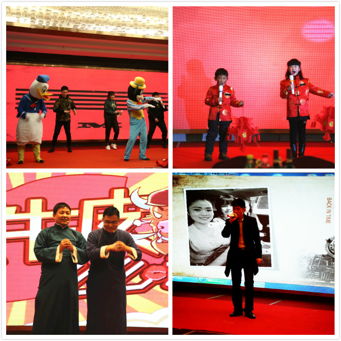 在酒店内部员工选拔的四位主持人带动下,整个春节联欢会充满着欢乐祥和的喜庆气氛,高潮迭起,精彩纷呈。儿童年谣开场生动喜庆。工程部音乐小品《红色回忆之大海航行靠舵手》,被工程部师傅演绎的滑稽逗乐,趣味横生;前厅部演绎的《老上海风情时装秀》熟悉的经典电视剧《上海滩》旋律,将现场的人带到了旧上海时代,旗袍、风衣、围巾、礼帽演绎了别样的老上海风情,冯程程和许文强也活灵活现地精彩呈现;小品《互相伤害》幽默风趣,让人忍俊不禁;中餐厅舞蹈《期待》动感热辣、风情妩媚;《财务》部相声《吃牛》诙谐搞笑,现场哄笑一片;人力资源部舞蹈《好运送给你》激情欢快、活力四溢;行政办的古筝独奏清雅唯美、乐声悠扬;市场销售部歌曲串烧流行歌曲,嗨爆全场,将现场引爆到高潮……精彩纷呈的节目,展现了文一戴斯人的多才多艺和活力激情。在节目表演过程中穿插的互动游戏和抽奖环节也是乐趣十足、动人心弦。中奖率为历届联欢会之最尤其是最后由酒店中高层出资准备的神秘大奖引爆了全场的热情,最后大奖揭晓,由前厅部同事获得,奖品是一台空气净化器。