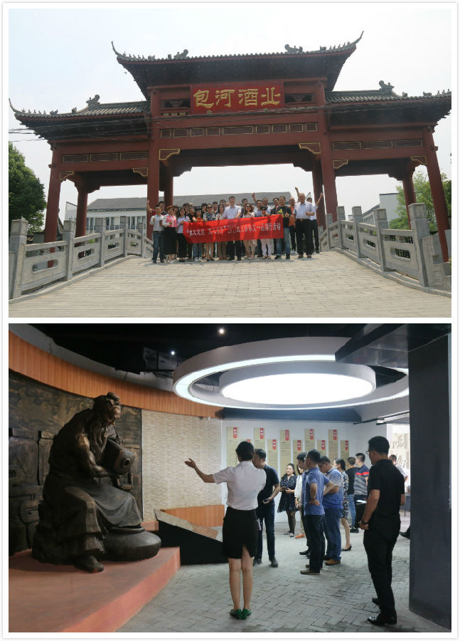 在4A级工业风景区的包河酒厂,瞻仰完巍然挺立的包公像,再从古朴典雅的清风塔下走过,在别具风格的小浮庄尽头将整个酒厂的风景尽收眼底。徽派园林风景和源远流长的徽酒文化的融合下,端起一杯甘甜醇香的酒液原浆,沉醉其中。在大道酒博物馆,包河酒业发展史以及“安徽小茅台”的荣誉让大家叹为观止。