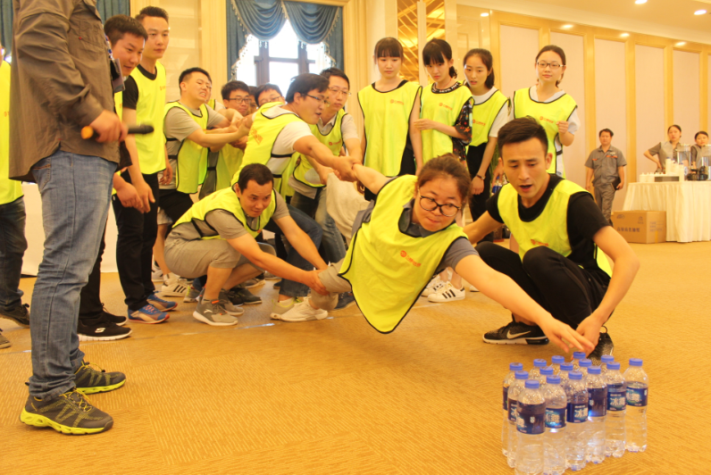 在白马山布莱顿庄园酒店4楼,专业户外拓展公司的教练们早已等待在那里。提振员工整体士气后,先后进行了教练说、破冰、奔向未来、呼吸的力量、极速60秒、五毛一元、驿站传书等个性化定制游戏,全方位训练员工的反应速度、协作配合、问题剖析等基本素质,增进了员工彼此间的相互了解,为今后全身心投入工作打下坚实基础。