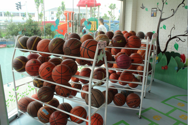 (瑞泰尚园幼儿园一楼摆放的训练用篮球)
