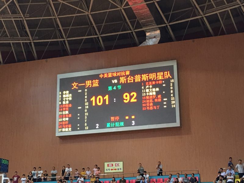 6月22日晚,文一男篮在江苏连云港东海县迎来了新赛季前的最后一场热身赛,对手依然是美国明星联队。经过40分钟的比赛,文一男篮以101:92击败对手,用胜利迎接新赛季的到来。