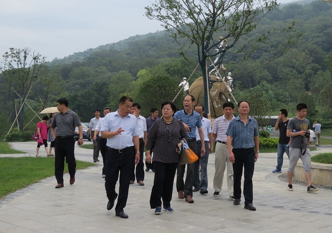 会前,各位领导参观了白马山国家篮球公园,在极具篮球文化特色的半山广场俯瞰已经建成的篮球公园各景点。听取篮球公园总经理丁保文对于公园建设及规划发展情况后,郭主任一行对于文一集团近年来在白马山的投资建设给予了充分肯定,并对白马山国家篮球公园项目的发展提出了建议:加快项目建设,努力打造成肥东及环巢湖旅游环线上特色风景区。