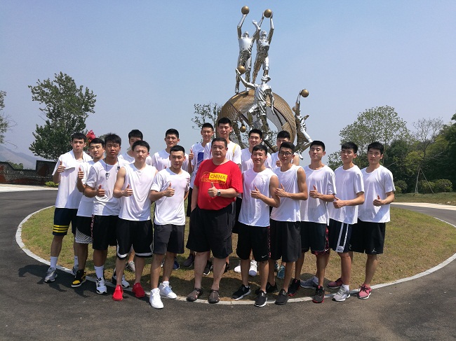 当大巴车缓缓开入公园大门时,树立在背景墙上的“白马山国家篮球公园”几个大字立刻吸引了球队的目光。走下大巴,球队近30人顶着烈日徒步走上白马山篮球广场。走入广场,第一眼看到是以“凝聚”为主题的雕塑,当工作人员向球队介绍主题时,球队主教练徐长锁立刻兴奋起来,他指着雕塑告诉大家,“离全运会还有不到一个月,我们现在唯有凝聚所有人的力量,才能在最后拼出一条路来。”