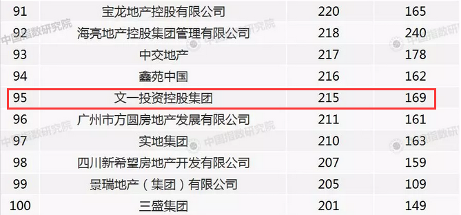 12月29日,中国指数研究院权威发布《2017年中国房地产销售额百亿企业排行榜》,年度销售业绩超百亿企业共计144家,文一投资控股集团以215亿元的销售额排名第95位,成为上榜百强军团的唯一一家安徽企业。