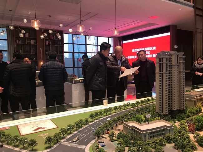 1月16日上午,武汉临空港经济技术开发区管委会主任、武汉市东西湖区委书记陈邂馨,区委常委、副区长朱吉信,区委常委、区委办主任刘华强,副区长郭小平、肖国华等领导带领区委办、区发改委、区国土局、区财政局等部门主要负责人莅临文一·云水湾调研指导。文一房地产集团武汉置业公司董事长兼总经理杨学文全程陪同。
