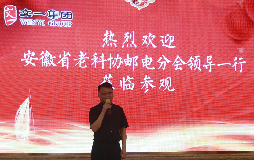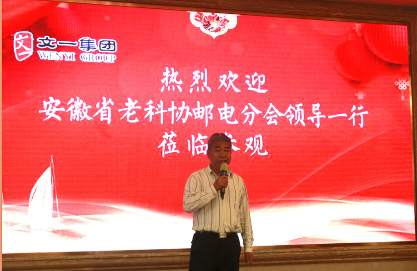 文一集团董事长周文育在致辞中首先对邮电分会领导们的到来表示欢迎,并指出,老科协邮电分会成立较早,协会成员在安徽邮电系统的建立、发展过程中做出了重要贡献,文一的发展也离不开老邮电系统各位领导的关心呵护,能够为协会服务,每年请各位老领导到文一来走一走看一看,我们倍感荣幸。集团今后也将全力支持协会工作,希望协会老领导们在白马山度过一个美好愉快的周末,祝愿大家身体健康、平安幸福。