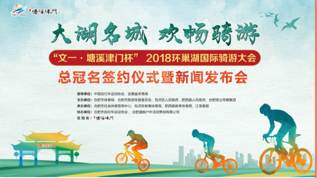 5月26日“文一·塘溪津门”杯2018环巢湖国际骑游大会的正赛即将拉开序幕! 5月15日,本次盛会的新闻发布会及签约仪式于文一·塘溪津门营销中心顺利举办。合肥市政府相关领导、文一集团相关领导、合肥媒体界大咖等一行嘉宾共同参加此次活动。