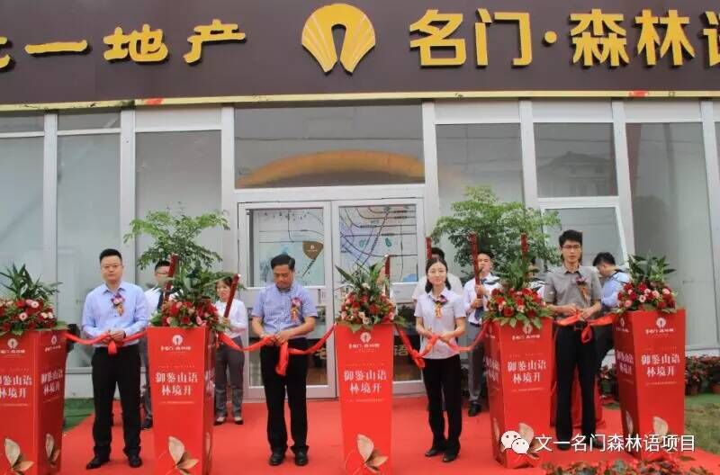 随后,文一地产肥西置业公司总经理周文胜、文一地产肥西置业公司营销总监苏珍、易居企业集团安徽区域副总经理张飞雄、思源地产合肥公司代理业务中心总经理陆忠华共同主持了本次临时展厅开放仪式。随着四位领导手中金剪一齐剪下,礼炮齐鸣,彩带飞舞,象征着为名门森林语剪出一个辉煌腾达的未来,也为西南高端人居剪出一条光明大道!