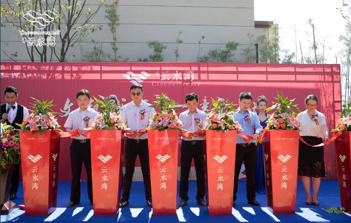 随后,在主持人的邀请下,文一地产相关领导及应邀贵宾依次上台剪彩,礼炮齐鸣,掌声雷动,文一·云水湾营销中心正式开启!