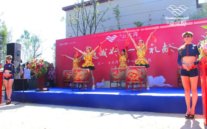 鲜花夹道,五彩空飘。伴随着一阵慷慨激昂的中国鼓表演,文一·云水湾营销中心开放典礼正式拉开帷幕。
