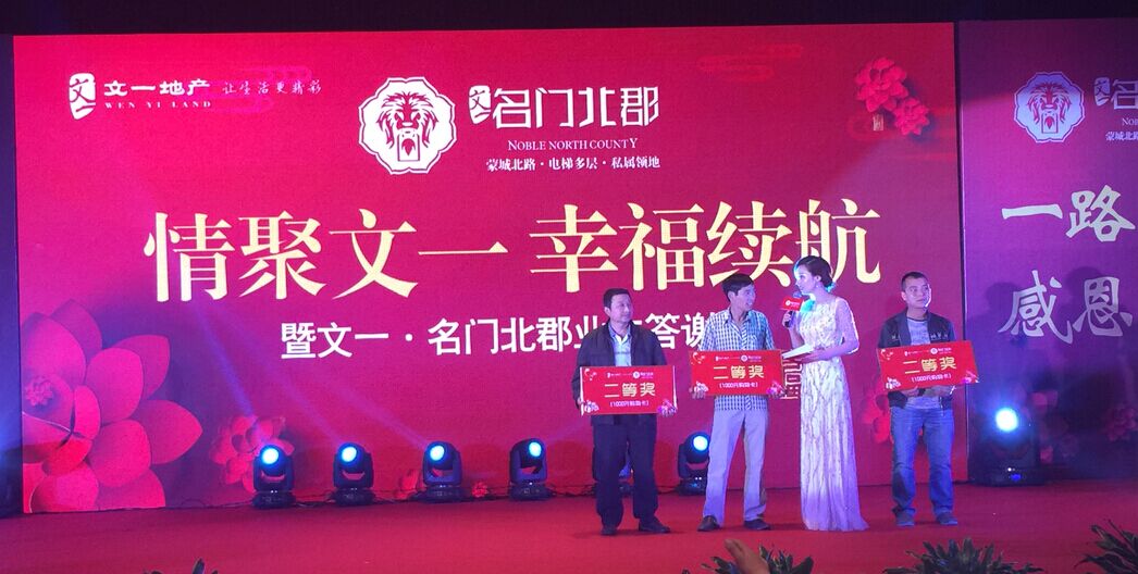 接着一首首经典老歌、川剧变脸、紧张刺激的大型魔术和二人转等精彩节目给业主带来了视觉与听觉上的享受,引得现场高潮迭起,掌声雷动。为答谢广大北郡新老业主,在演出节目现场特别设计了抽奖环节,让答谢会在喜庆中还充满着悬念;凡到场的业主签到后均可领取抽奖券一张,参加答谢会的抽奖活动。抽奖的礼品有电视机、电冰箱、空调扇、电饭煲等,这些实用的家电不仅为业主添置了居家所需之物,也是文一·名门北郡从业主真实需求考虑出发而定。