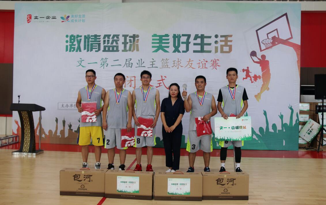 9月1日,“激情篮球 美好生活”文一第二届业主篮球友谊赛在文一篮球训练基地迎来收官之战,随后举行闭幕式。文一集团副总裁、工会主席薛英姿,文一篮球俱乐部董事长兼总经理宫鲁鸣等出席闭幕式,仪式由文一物业总经理赵虹主持。