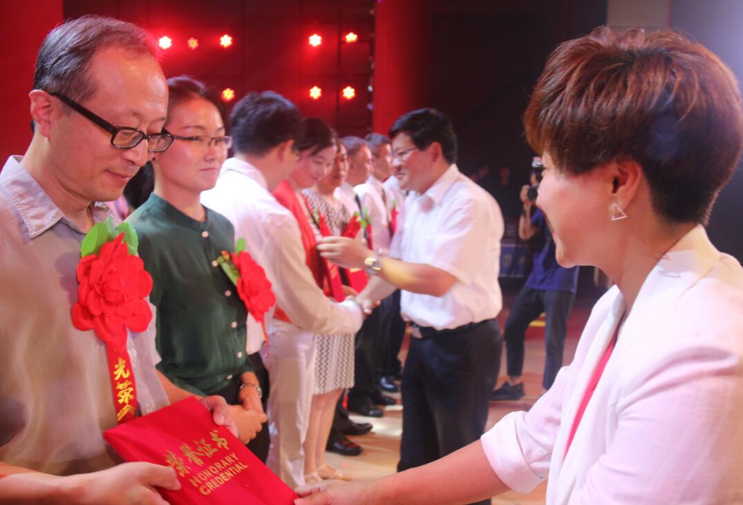 (顾书记、薛总共同为“最美教师”颁奖)