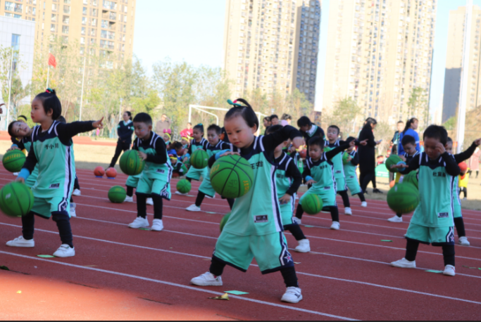 本次活动更将平时文一教育篮球教研中篮球游戏技巧的创新展现得淋漓尽致。经过一系列比赛,文一瑞泰江南幼儿园在运球力量游戏中获得全场冠军,文一肥东瑞泰尚园幼儿园在速度运球比赛中独占鳌头。文一篮球俱乐部的篮球运动员们更是亲自参与到篮球游戏中来,小篮球宝贝与昔日的偶像一起感受篮球带给我们的快乐,华府,绿洲,肥西三所幼儿园带来的精彩竹竿舞更是让欢声笑语响彻全场。