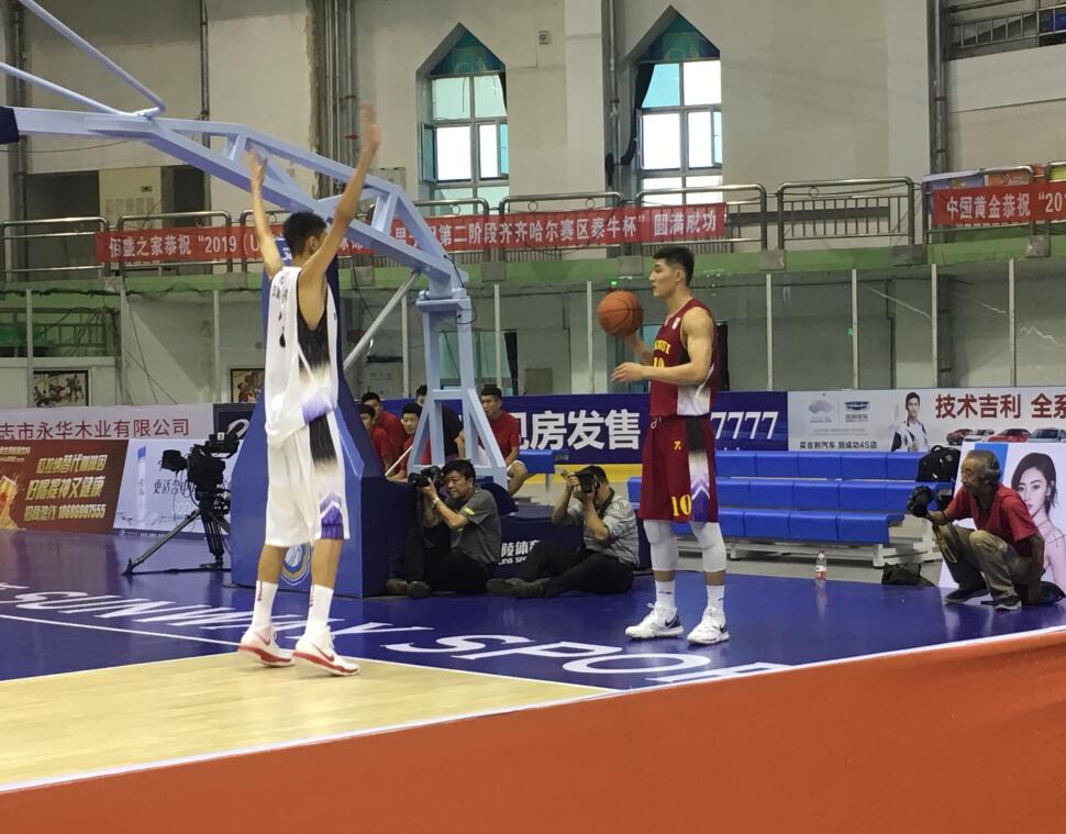 第三节中段,文一青年队首次派出李祥波、刘仁斌和李浩南三大内线同时登场,主动加强对于篮板球的保护,刘仁斌本节表现出色,连续内线强攻造成杀伤。本节结束时,文一青年队以71-62继续占据主动权。