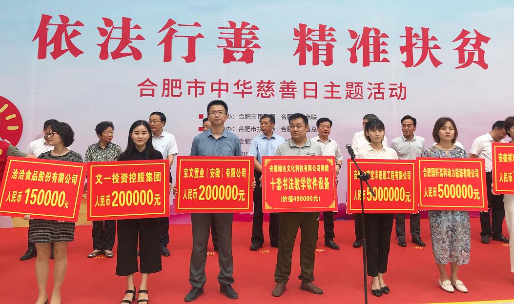 9月5日,由合肥市民政局、合肥市工商联、合肥市扶贫办、合肥慈善总会联合主办的纪念“中华慈善日”主题活动在市政务区阳光大厅举行。文一集团作为合肥市慈善副会长单位、基金单位出席活动,并获评2019年度“合肥市慈善(公益)先进单位”。