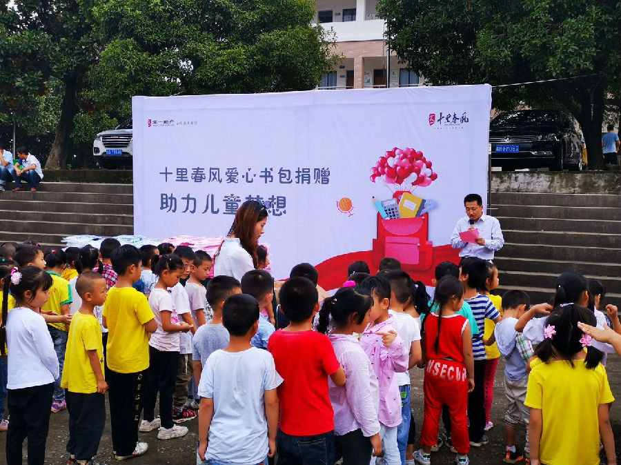 9月5日下午,文一·十里春风项目负责人带队驱车前往天门镇中心学校,为那里的学子们送去爱心书包。