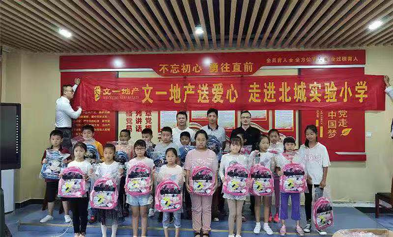 文一地产开学送书包公益行,送出的不仅是承载着学生们上课书本的书包,更是承载着文一·名门森林语对孩子们的殷切关爱、对教育事业的重视,也体现着文一地产不忘回馈社会的集团使命。